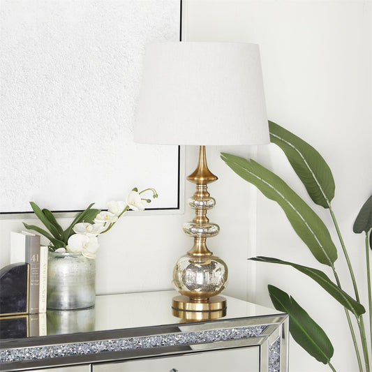 35692 Silver Linen Fabric Buffet Lamp with Gold Accents, 15" x 15" x 30"