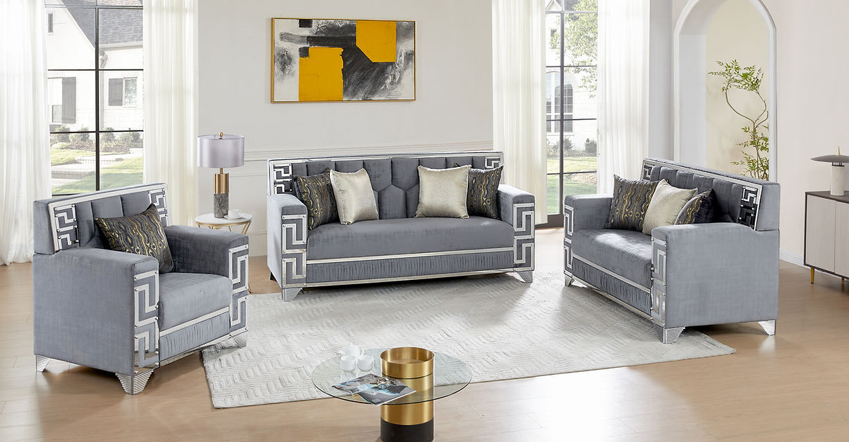 3208 Fabric Tufted Back Reversible Sectional Sofa Set