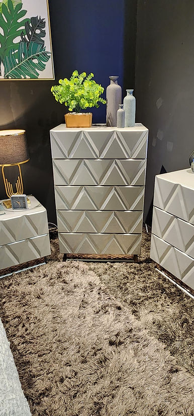 Drystan Twin Panel Headboard with Mirrored Dresser and Chest