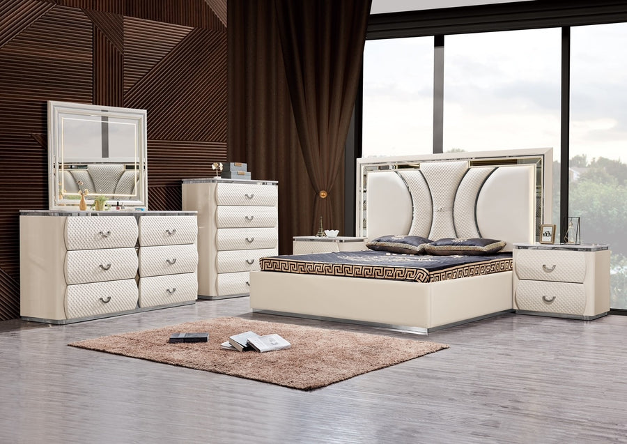 Realyn Upholstered Panel Bed With Mirrored Dresser, Chest And Nightstand