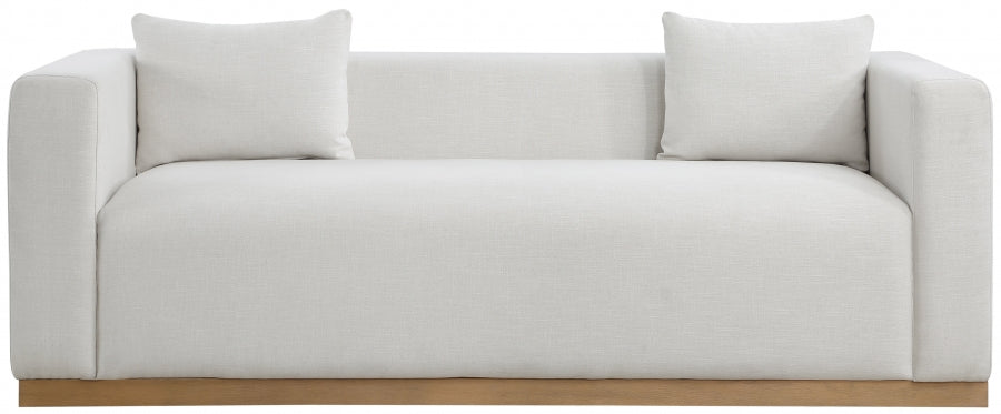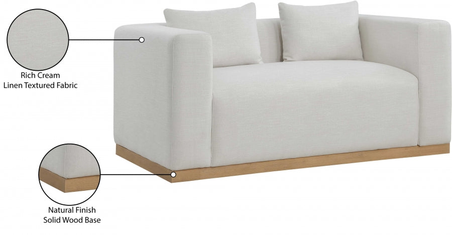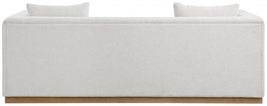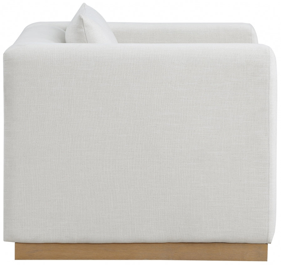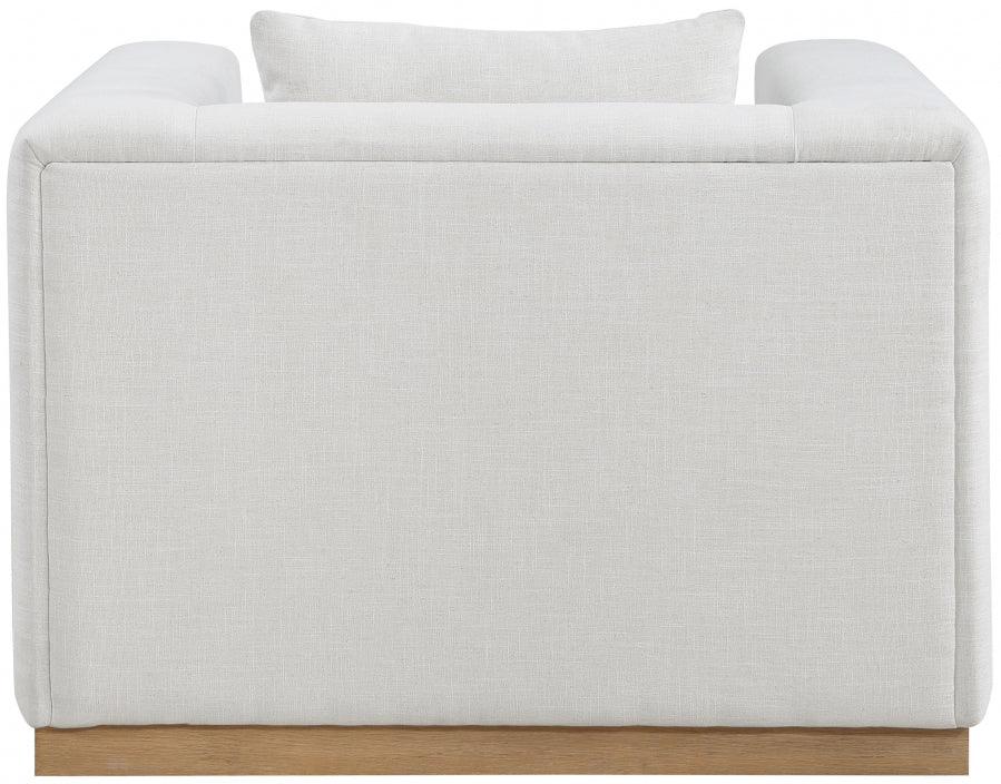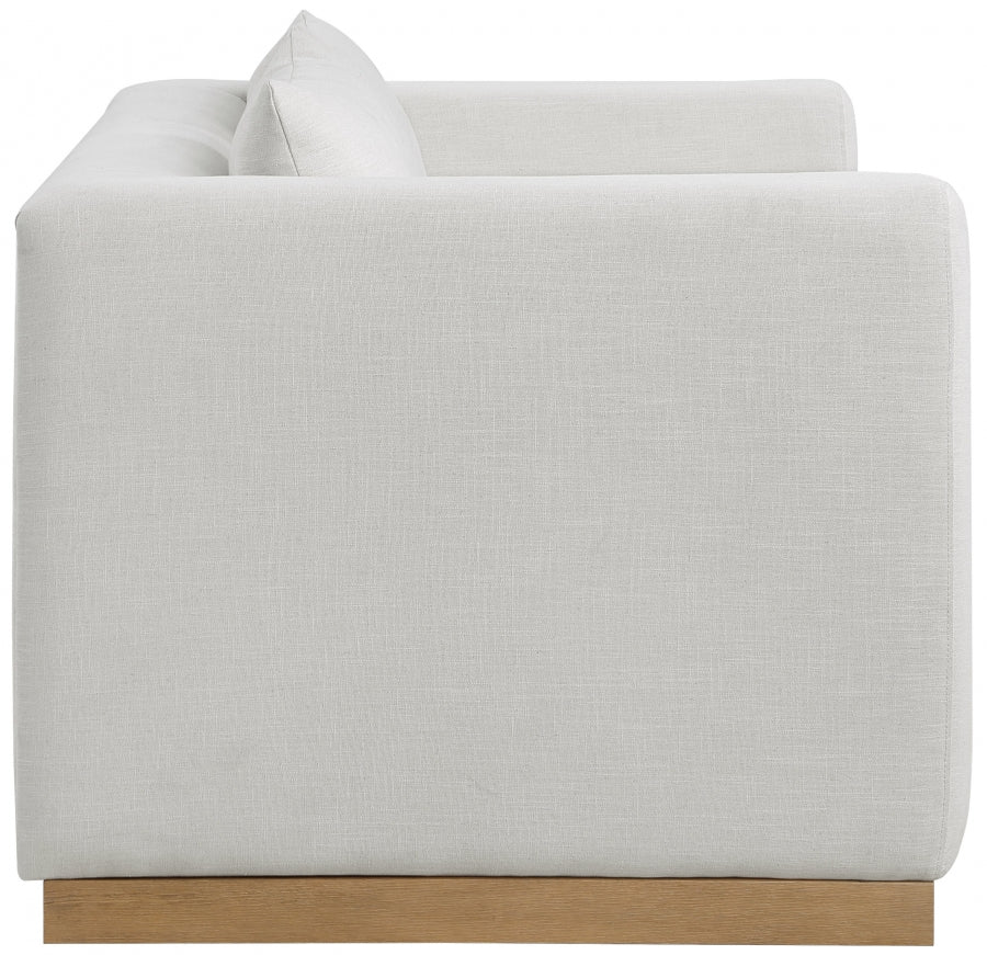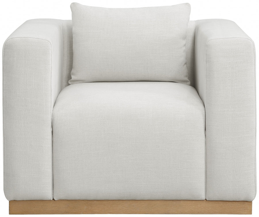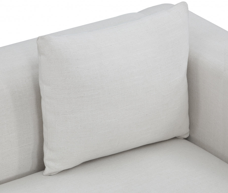 Make this Eifla linen textured fabric living room sofa the center a cozy reading nook. This overstuffed chair is stunning from angles, with its contemporary design elements and chic rich cream color. Plumply stuffed with fluffy fill to create the ultimate space for snuggling up with your favorite reading material or while binging on the latest TV program. The sofa rests on a black finish solid wood base for stability and added contrast with its beige upholstery.