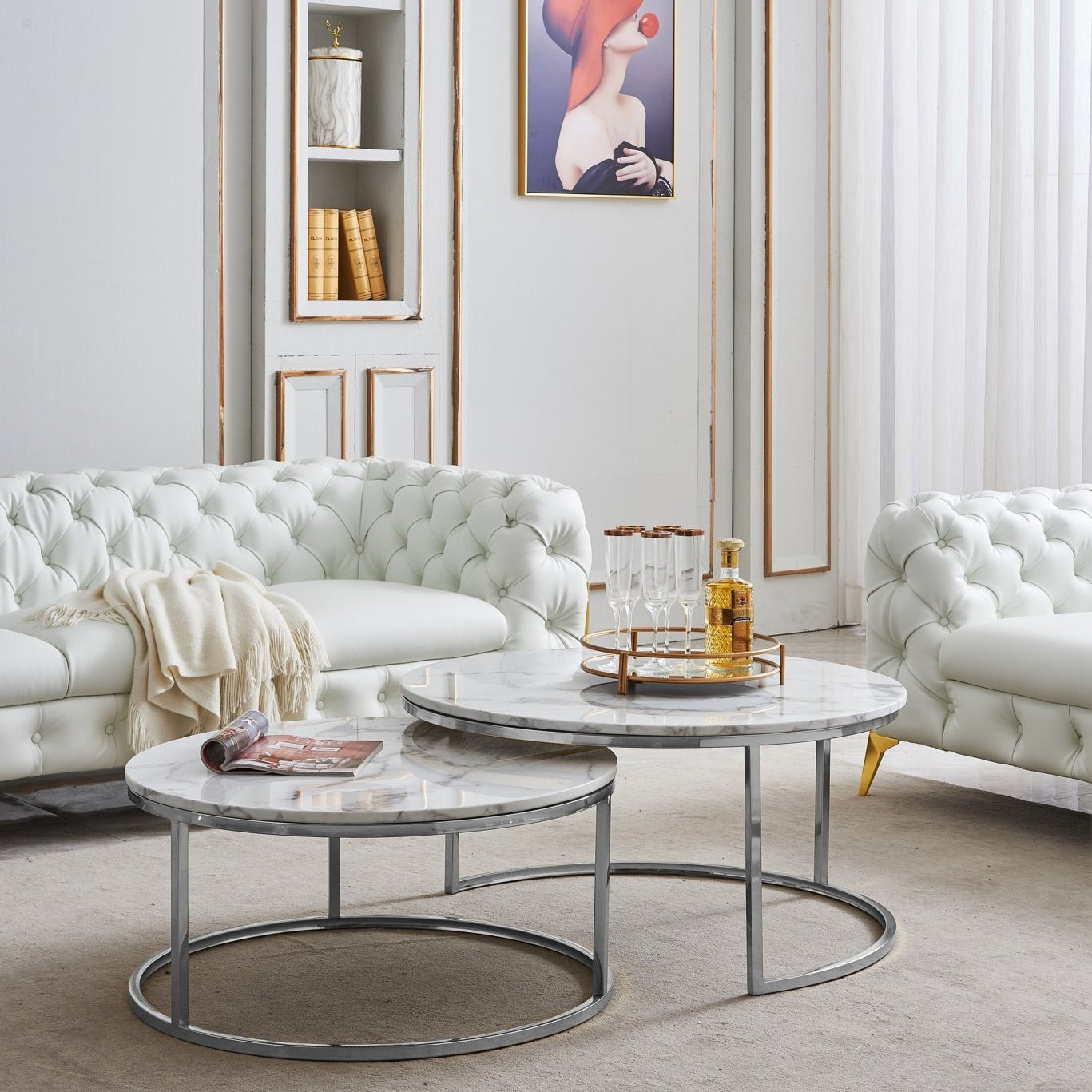 06786D-VOT Assenav White Marble Lacquer 53" Round Dining Table