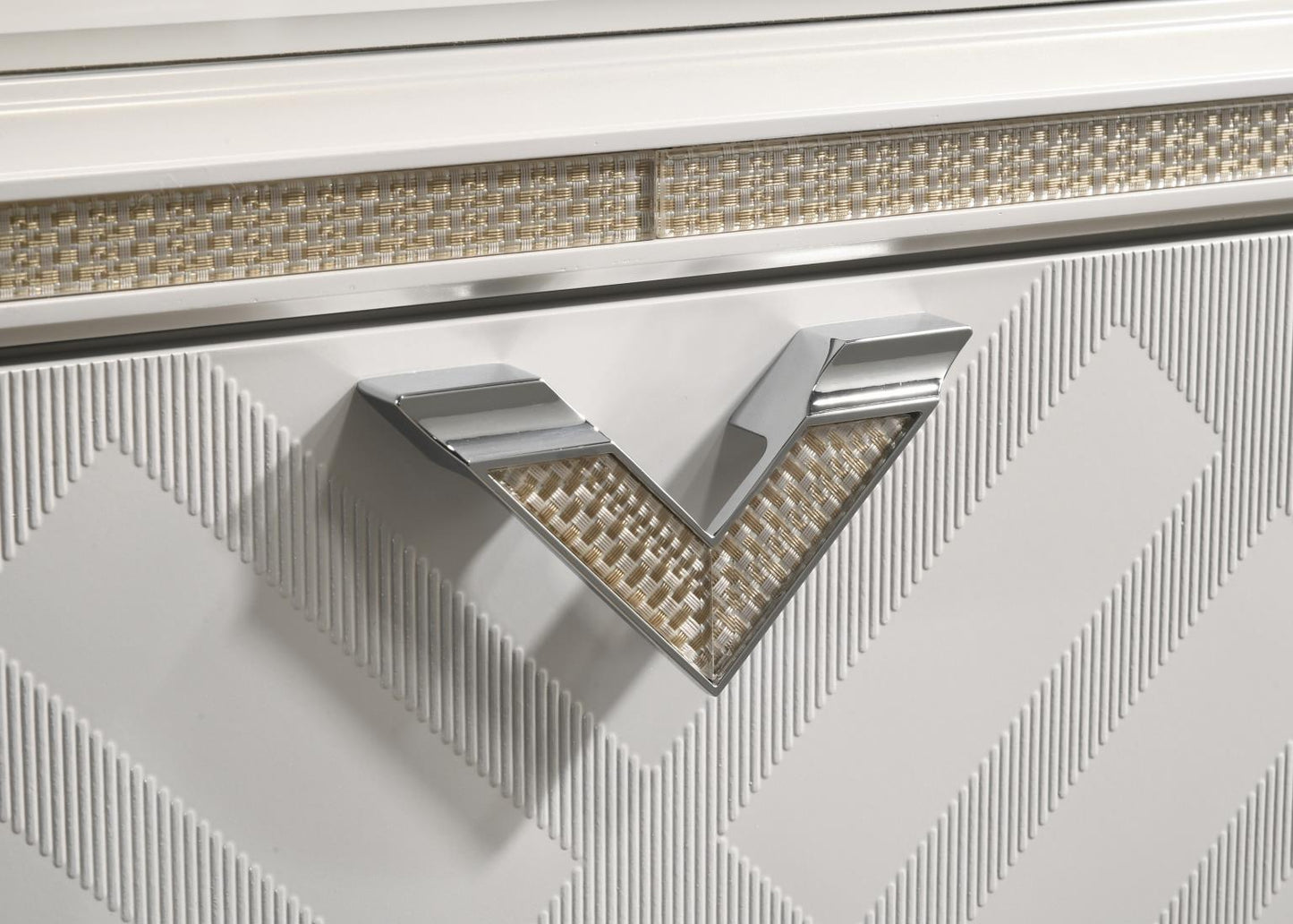 Drystan Twin Panel Headboard with Mirrored Dresser and Chest