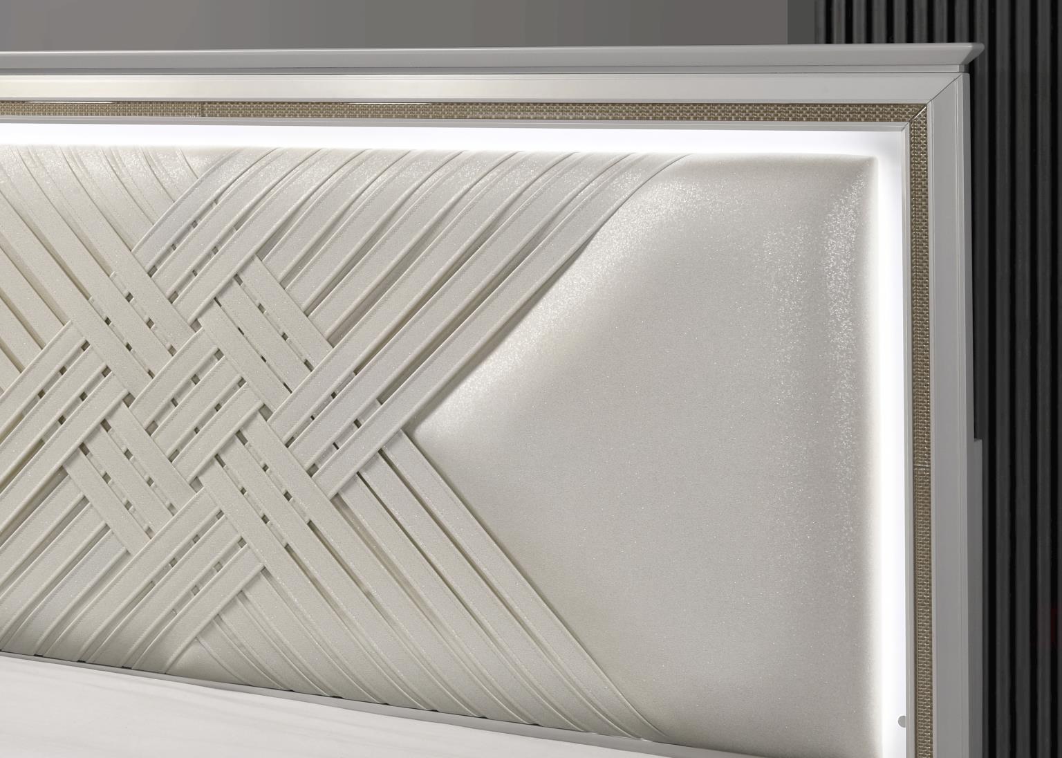 Realyn Upholstered Panel Bed With Mirrored Dresser, Chest And Nightstand