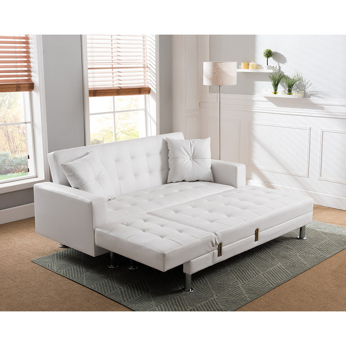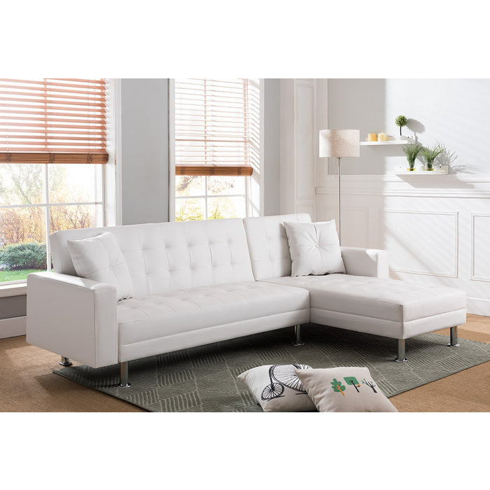 Soft Polyurethane / Faux Leather Upholstered Tufted Reversible Chaise Sectional Click-Clack Sofa Bed with 2 Throw Pillows