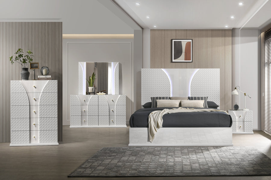 This Set includes King/Queen Bed, Dresser, Mirror, 1 Nightstand.