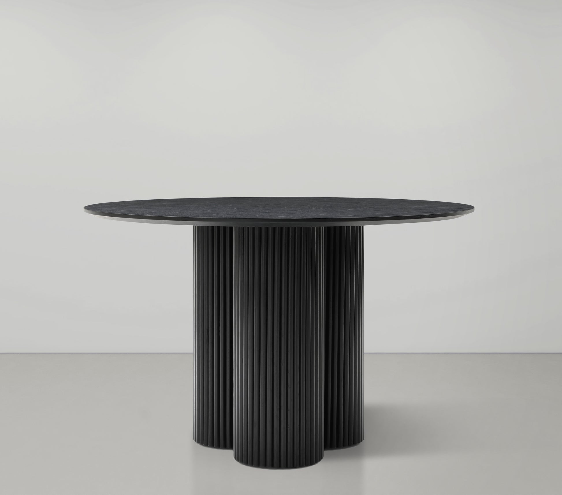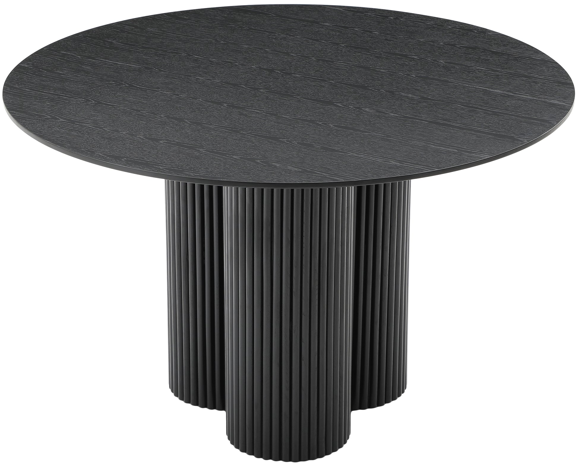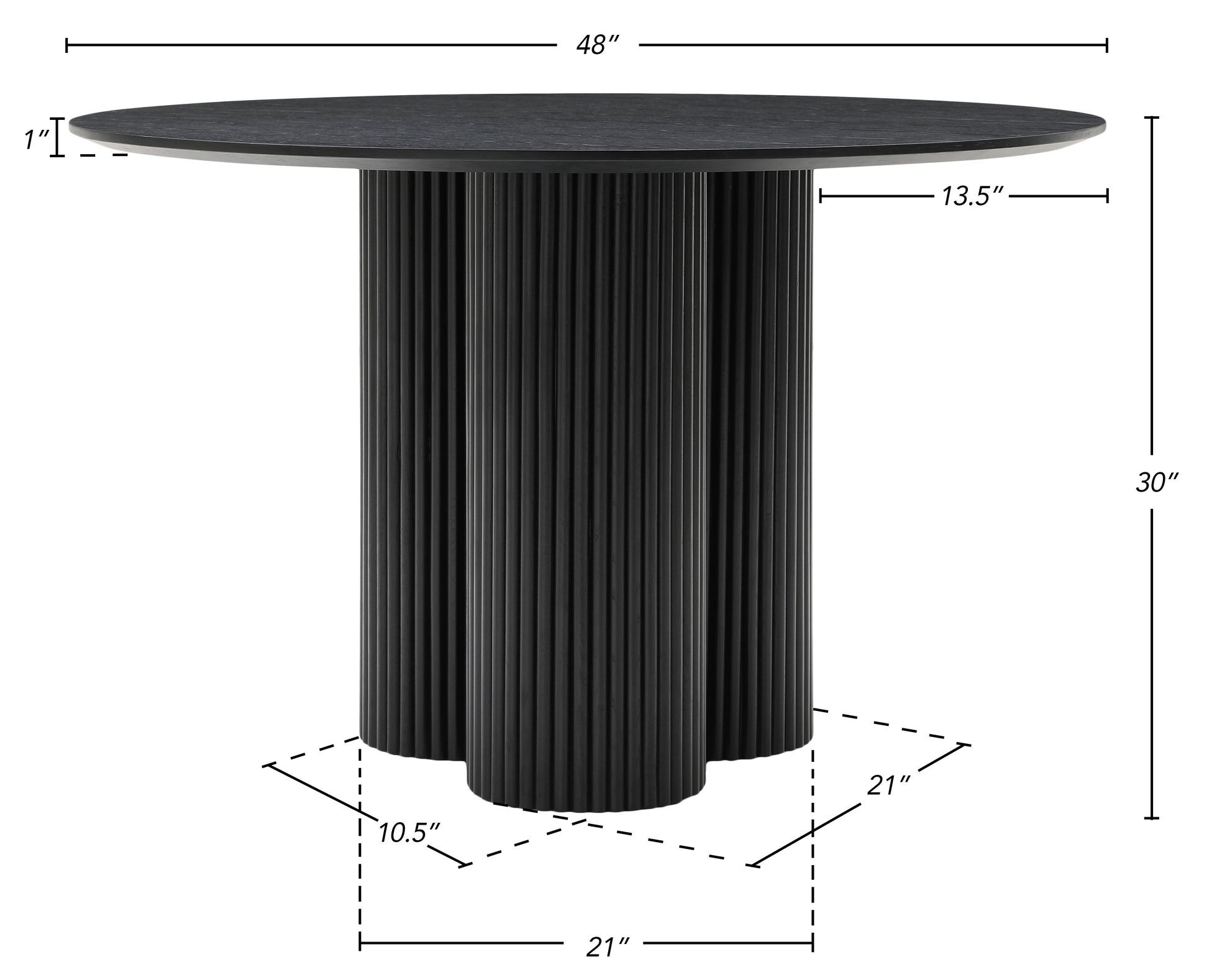 Gather your favorite peeps around this Simba dining table. A sleek shade of white, this handsome mid-century designed table has a modish look that's perfect for both contemporary and traditional dining rooms. The natural oak veneer table top measures 48 inches, giving you oodles of room for place settings and lots of elbowroom for dinner guests. Made from ash wood and wood products, this sturdy table has a solid wood fluted base for added aesthetics.