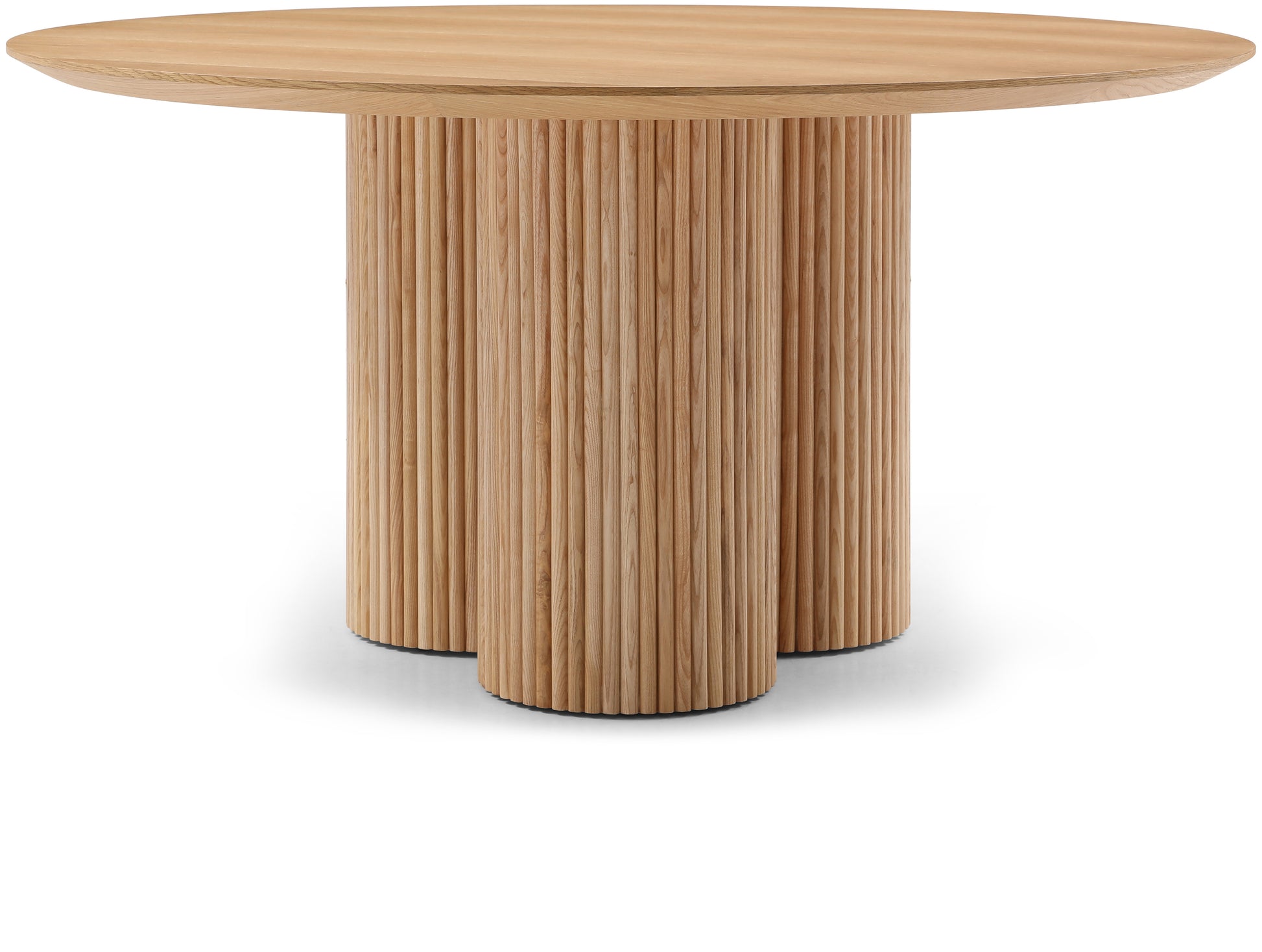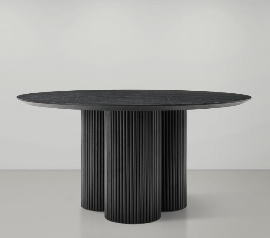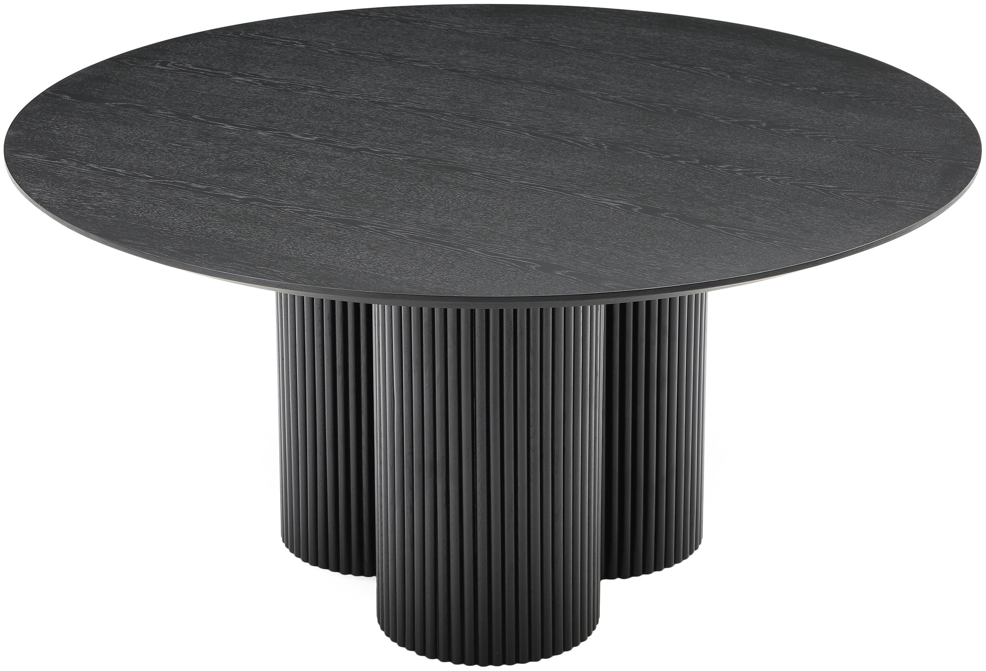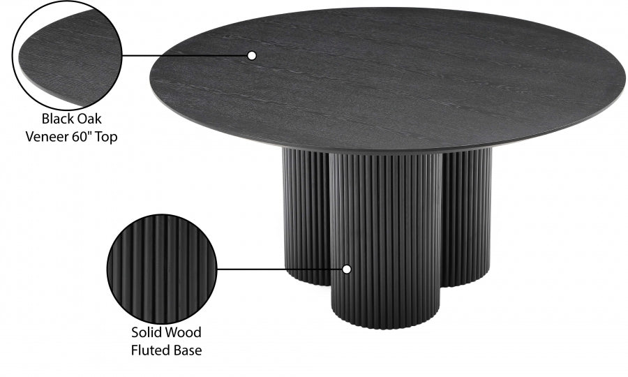 Gather your favorite peeps around this Simba dining table. A sleek shade of black, this handsome mid-century designed table has a modish look that's perfect for both contemporary and traditional dining rooms. The black oak veneer table top measures 60 inches, giving you oodles of room for place settings and lots of elbowroom for dinner guests. Made from ash wood and wood products, this sturdy table has a solid wood fluted base for added aesthetics.