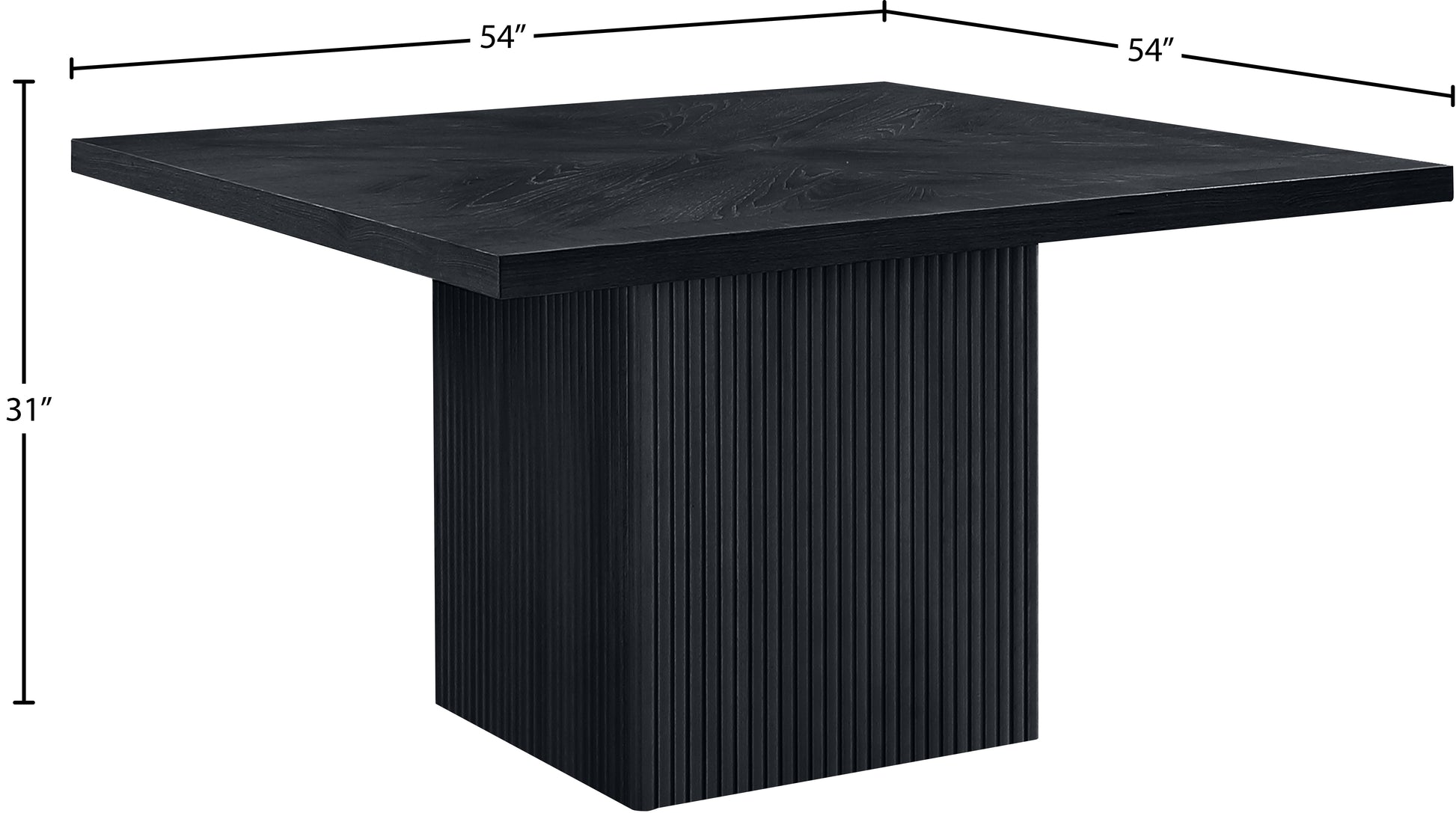 Give your dining room or eat-in kitchen a casual vibe with this Belinda dining table. A solid wood base and resilient construction offers impeccable durability and remarkable beauty. The square top rests on the fluted base, providing oodles of elbow room for family and friends to get comfortable while they nosh on their meal. The chair's made from wood and wood products for resilience, and its neutral black finish lets it mesh well with the dining chairs or stools of your choice.