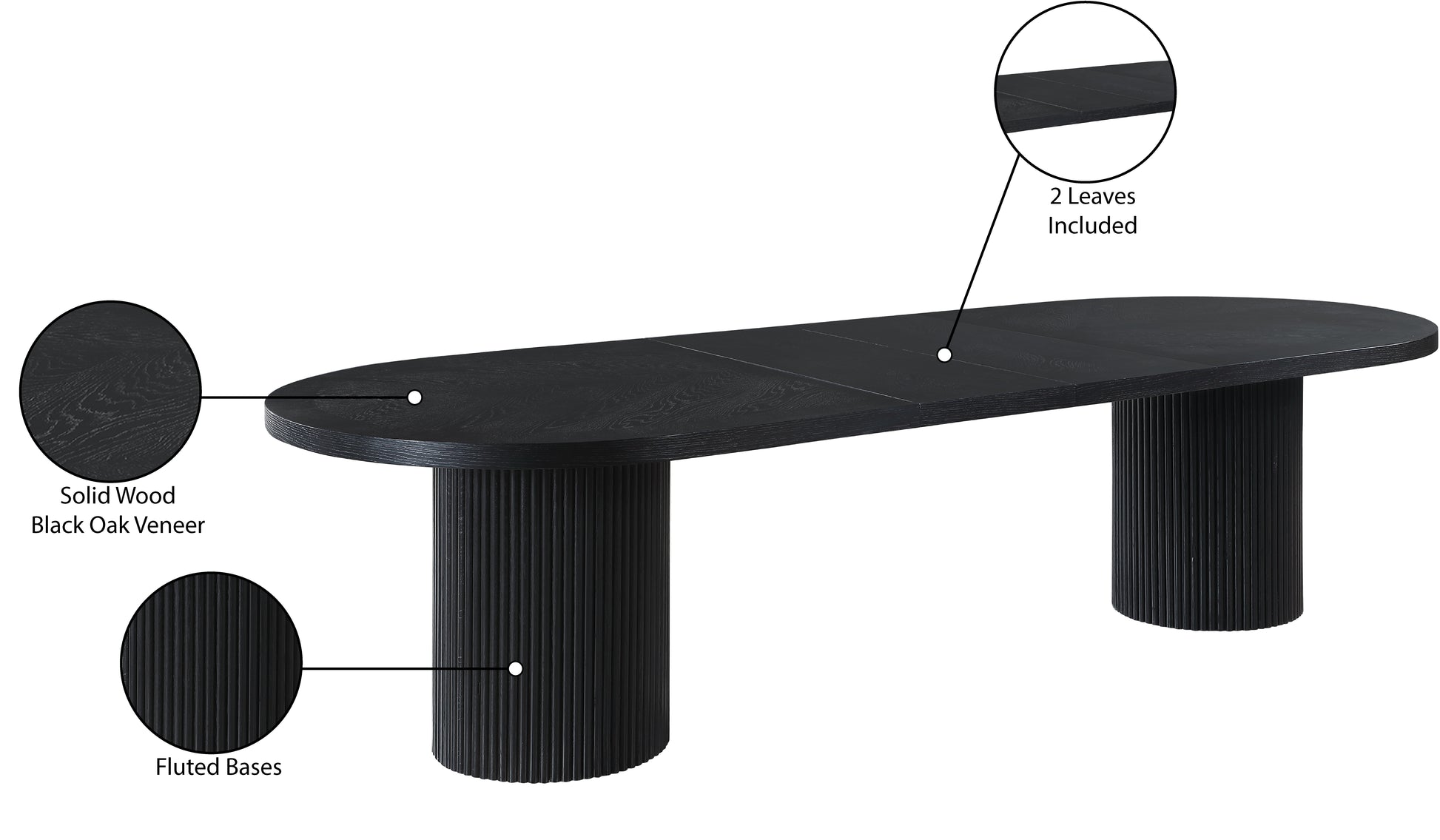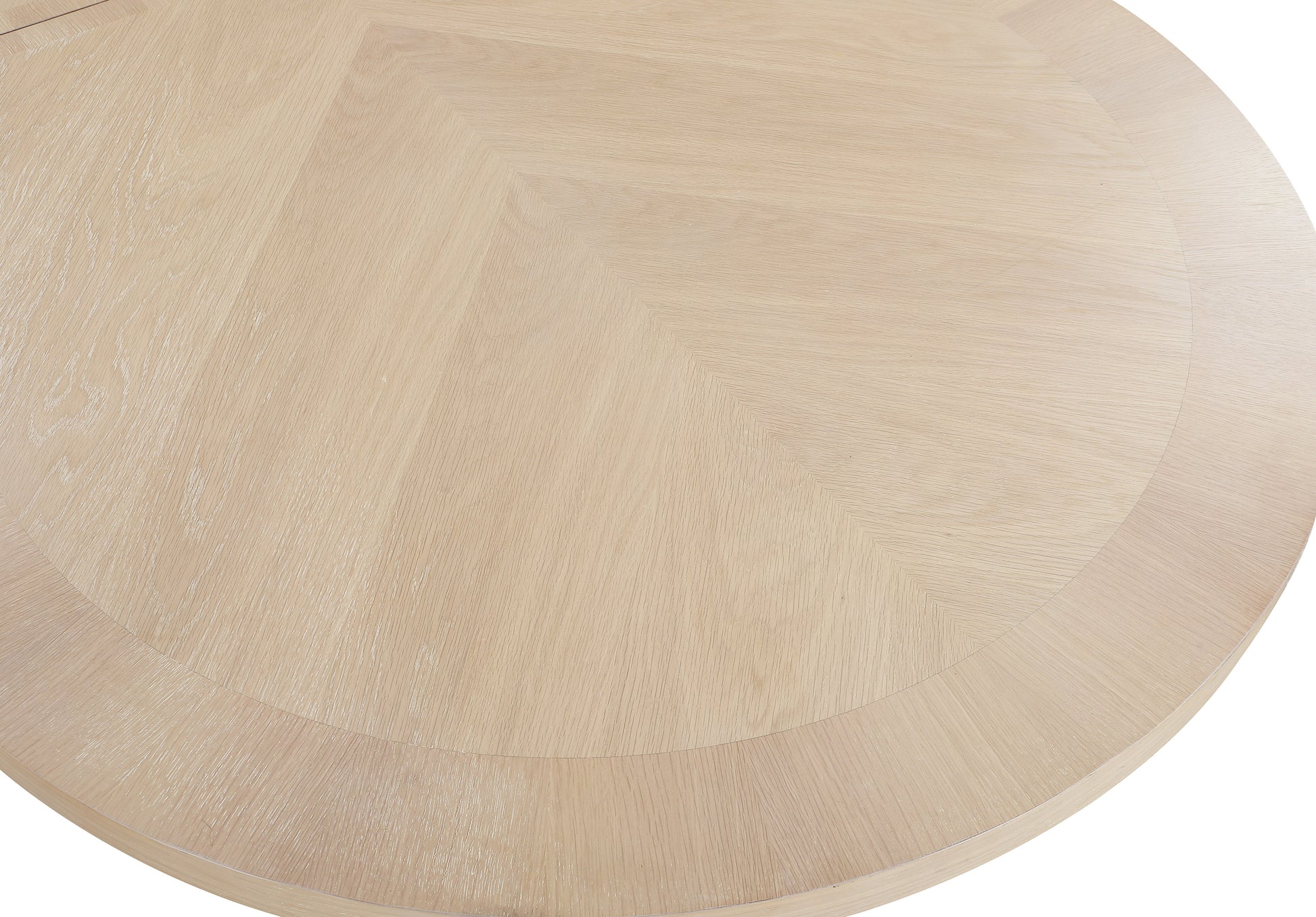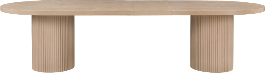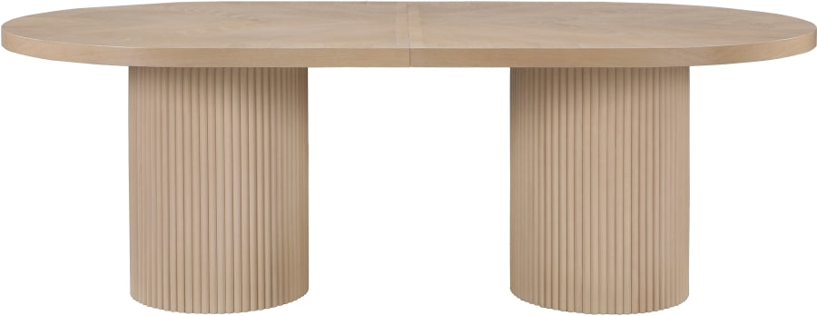 Transform your dining area with this elegant Belinda white oak wood dining table (3 boxes). Crafted from solid wood with a white oak veneer, this table is sure to last for generations. Its modern oval design is perfect for any contemporary dining space, while its fluted bases provide durability as well as make a unique fashion statement. Two leaves are included, so you can adjust the length of the table according to how many guests you're entertaining.
