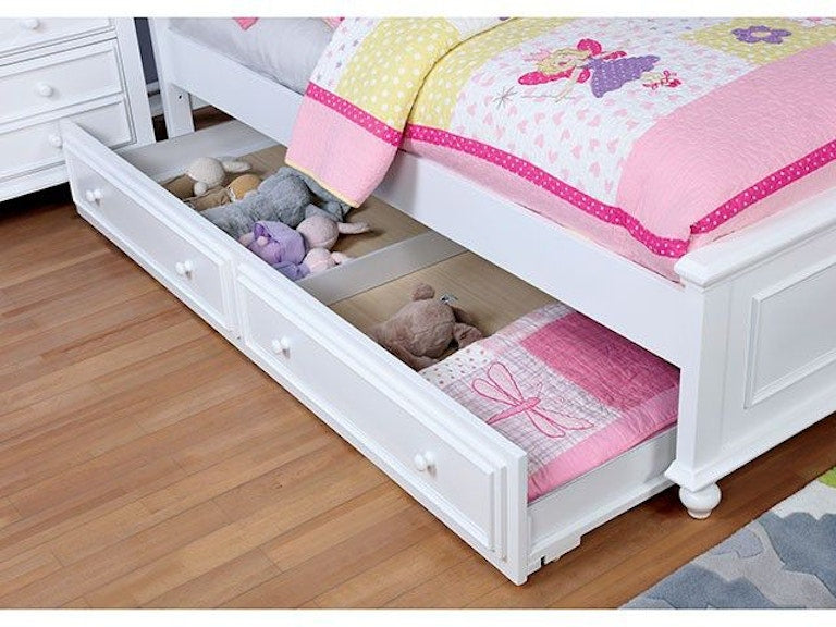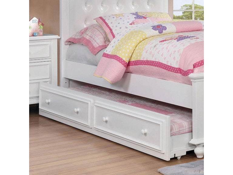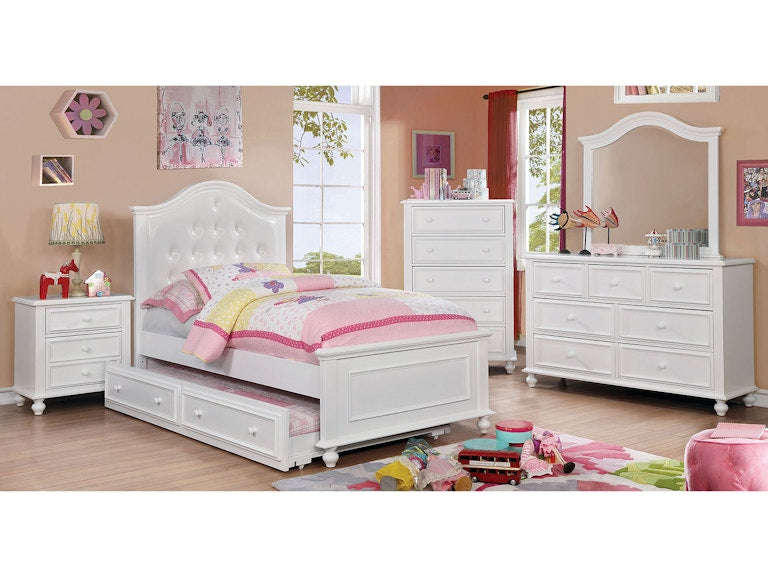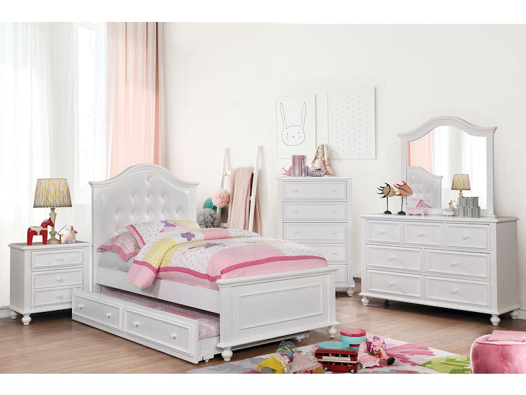 Fit for your little king or queen, this traditional style youth bed collection features intricate details and ample storage. The tufted leatherette headboard features a camelback design with moulded trim details to create a stylishly regal look that is sure to impress. With matching case goods that offer multiple roomy drawers and beautiful bun feet, there is no denying the practicality and beauty of this collection.