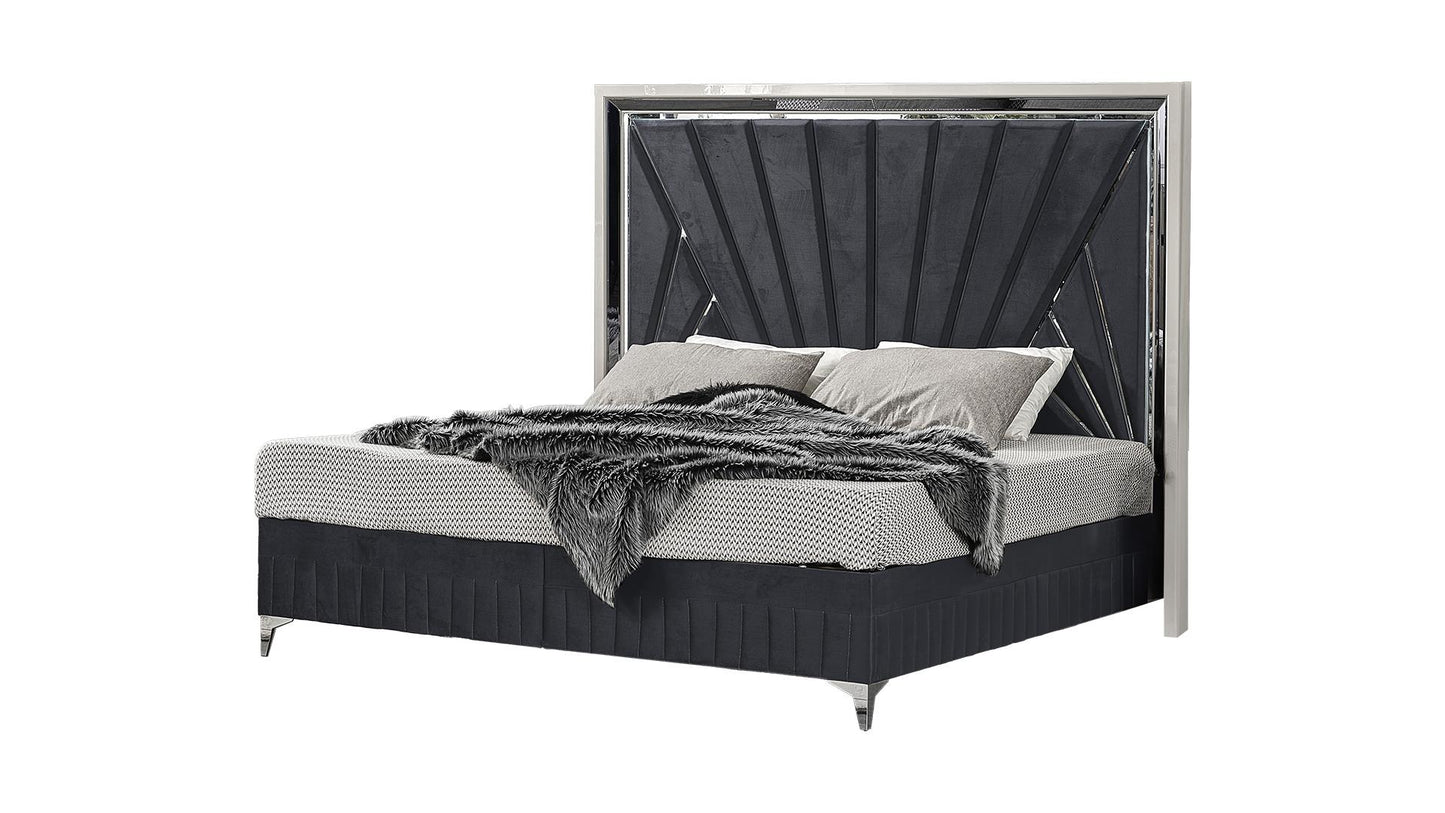 Realyn Upholstered Panel Bed With Mirrored Dresser, Chest And Nightstand