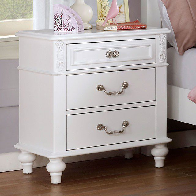 For those that prefer a taste of the exquisite, this set fulfills that desire - and then some. It is majestic splendor on display, centered around a bed that boasts an assortment of novel embellishments. Etched faux glass finials highlight the corners in dramatic grandeur. The headboard features button-tufted padding, diamond-like accents and a unique wood-carved floral design that is shared with the matching mirror. Identical turnip feet provide a further unifying aesthetic, and the unique French / Olde English style trim enhances the royal sensibility that never fails to elevate the stature of any room.