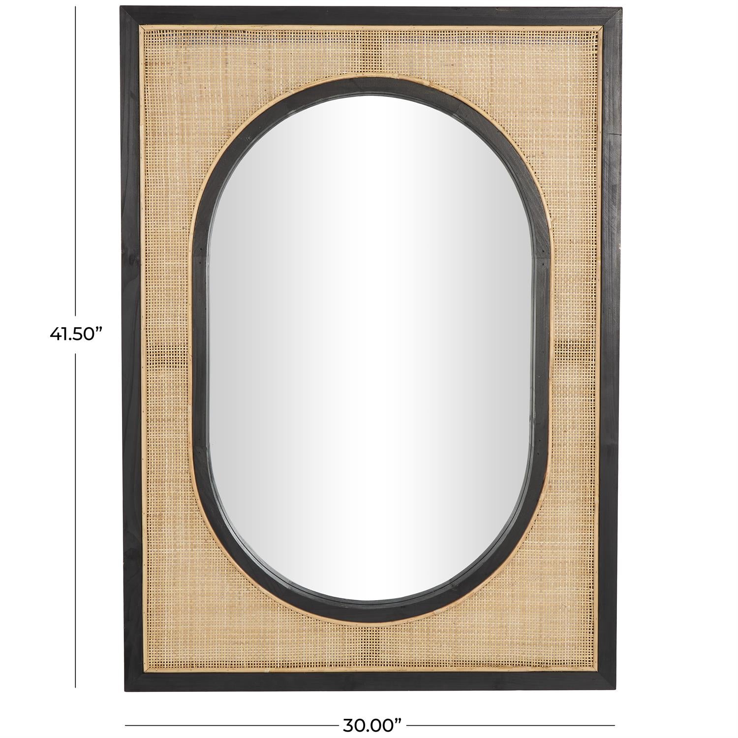 Brown Rattan Wall Mirror with Black Accent Frames, 30" x 2" x 42"