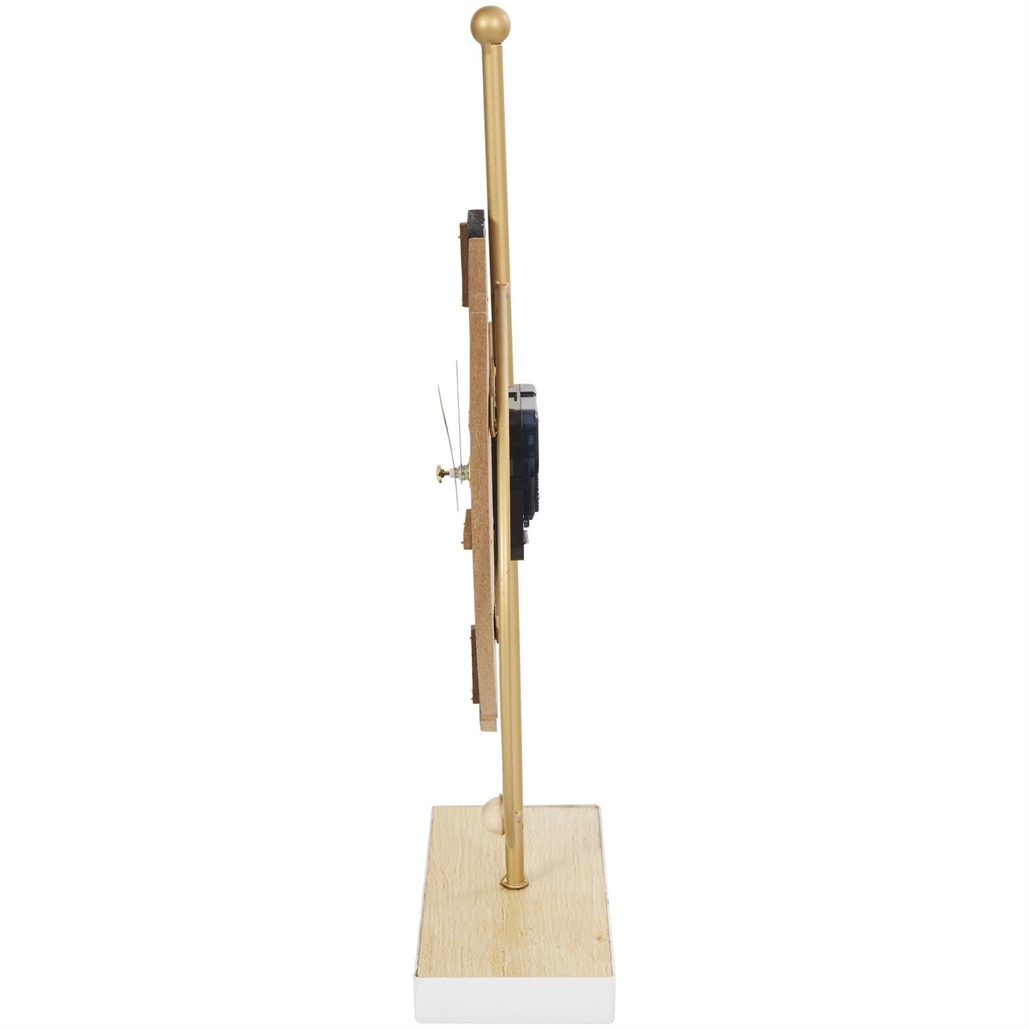 CosmoLiving by Cosmopolitan Black Wooden Geometric Two-Toned Clock with Wood Accents and Gold Semicircle Frame, 9" x 3" x 14"