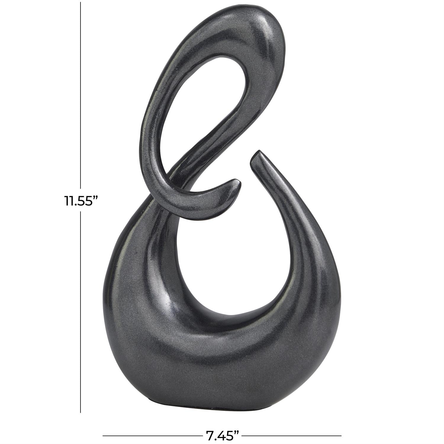 - The polished dark gray home decor figurine flaunts a solid aluminum swirl-shaped silhouette with intricate details and a flattened bottom base