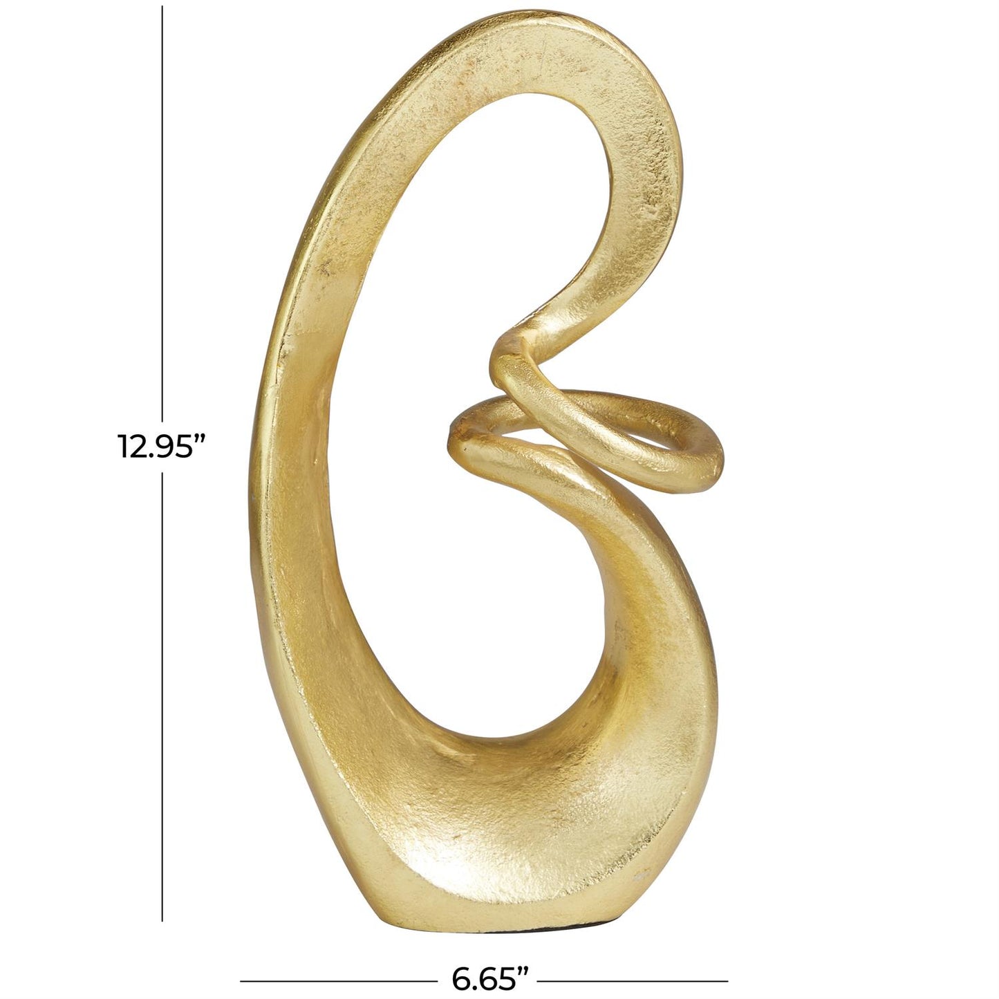 - The satin gold home decor figurine flaunts a solid aluminum swirl-shaped silhouette with a flattened bottom base