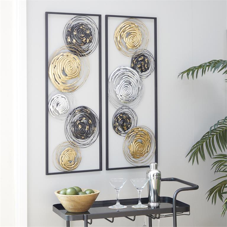 - Designed as long rectangular panels with spiral patterns, this polished black wall art set for living room adds an aesthetically pleasing geometric element to your space