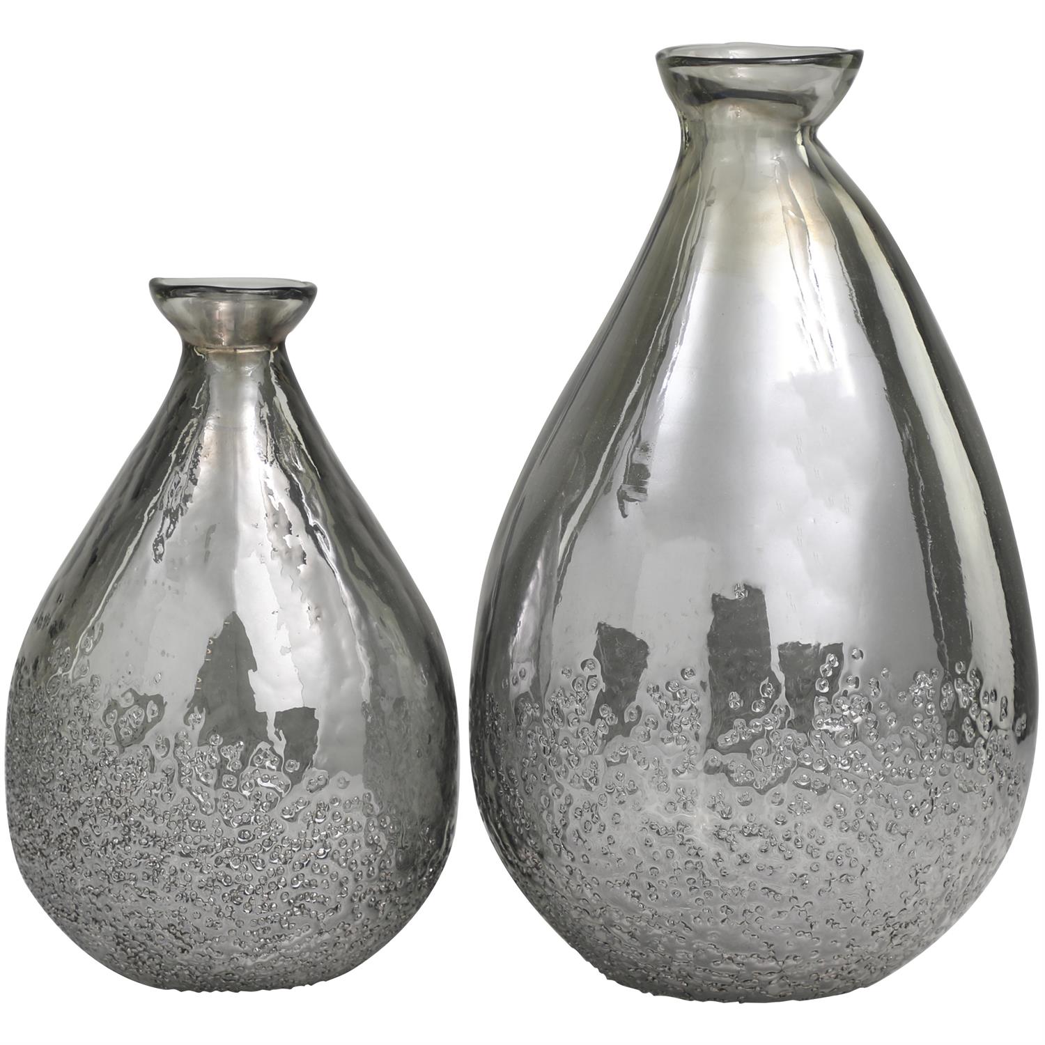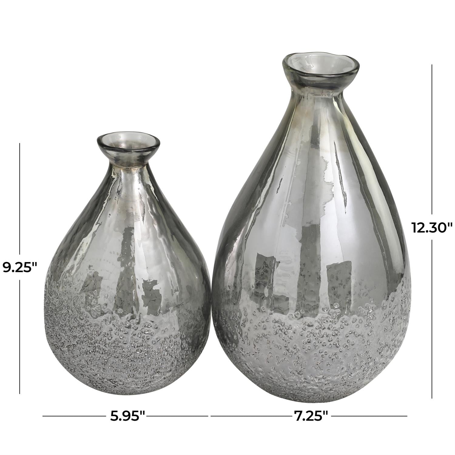 Gray Glass Textured Teardrop Vase, Set of 2 12", 9"H