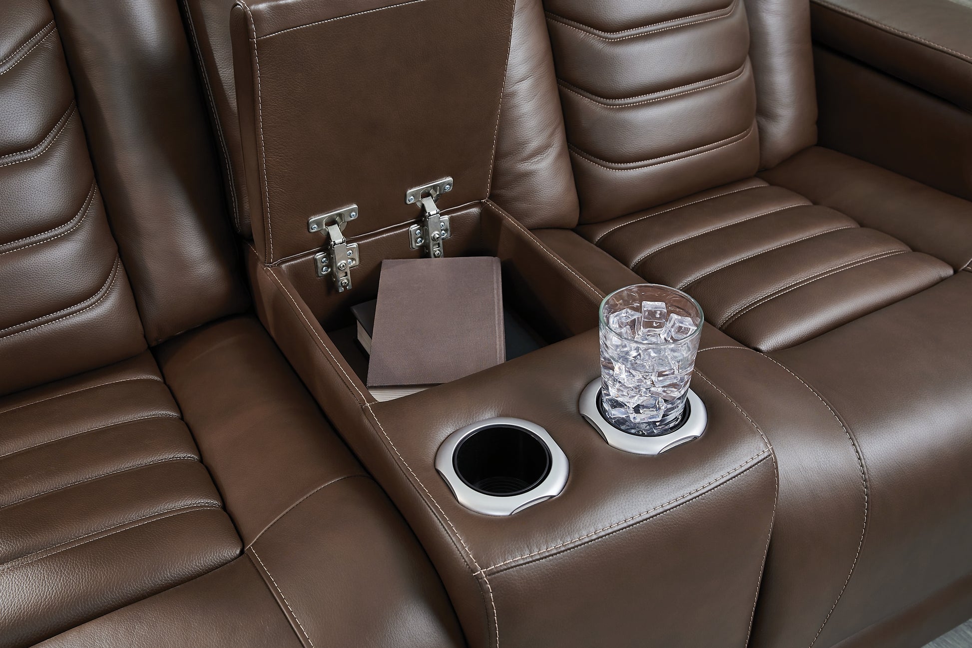 Talk about having it all. This power reclining loveseat with console entices with a luxe look and fabulous feel—and satisfies with high-end style at an affordable price. Sleek and stylish, this impressive seating offers the convenience of one-touch power controls along with wireless and USB charging. It's everything you need, right at your fingertips, to take your comfort to the next level.
