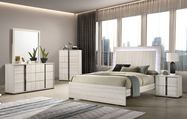 Drystan King Panel Headboard with Mirrored Dresser, Chest and Nightstand