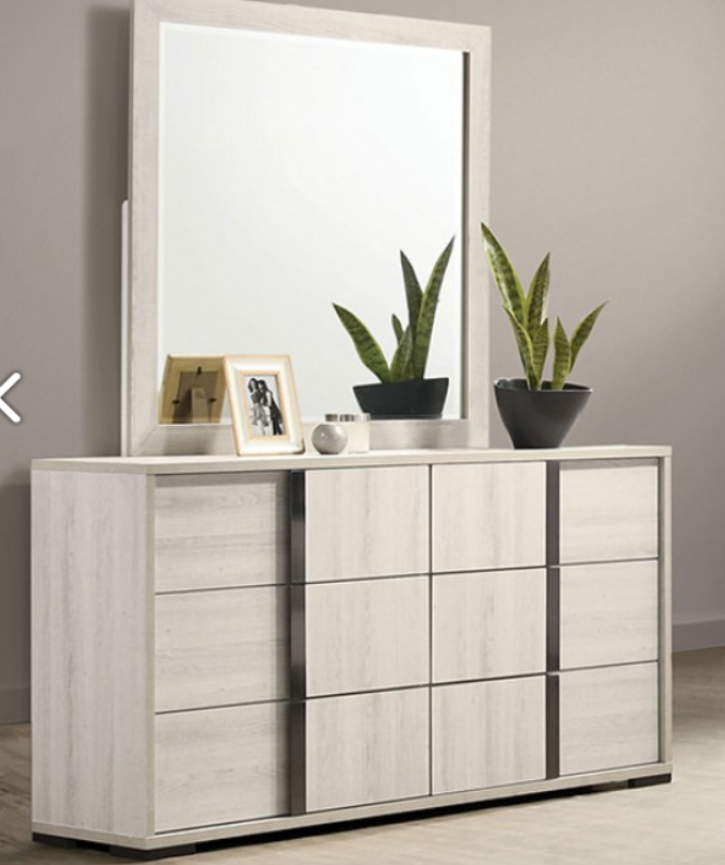 Drystan Twin Panel Headboard with Mirrored Dresser and Chest