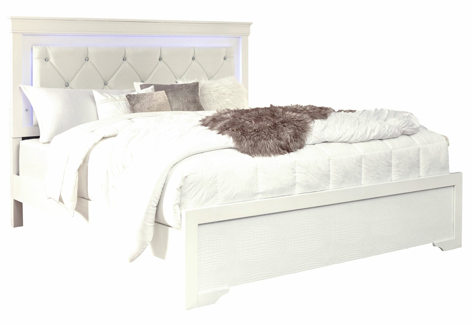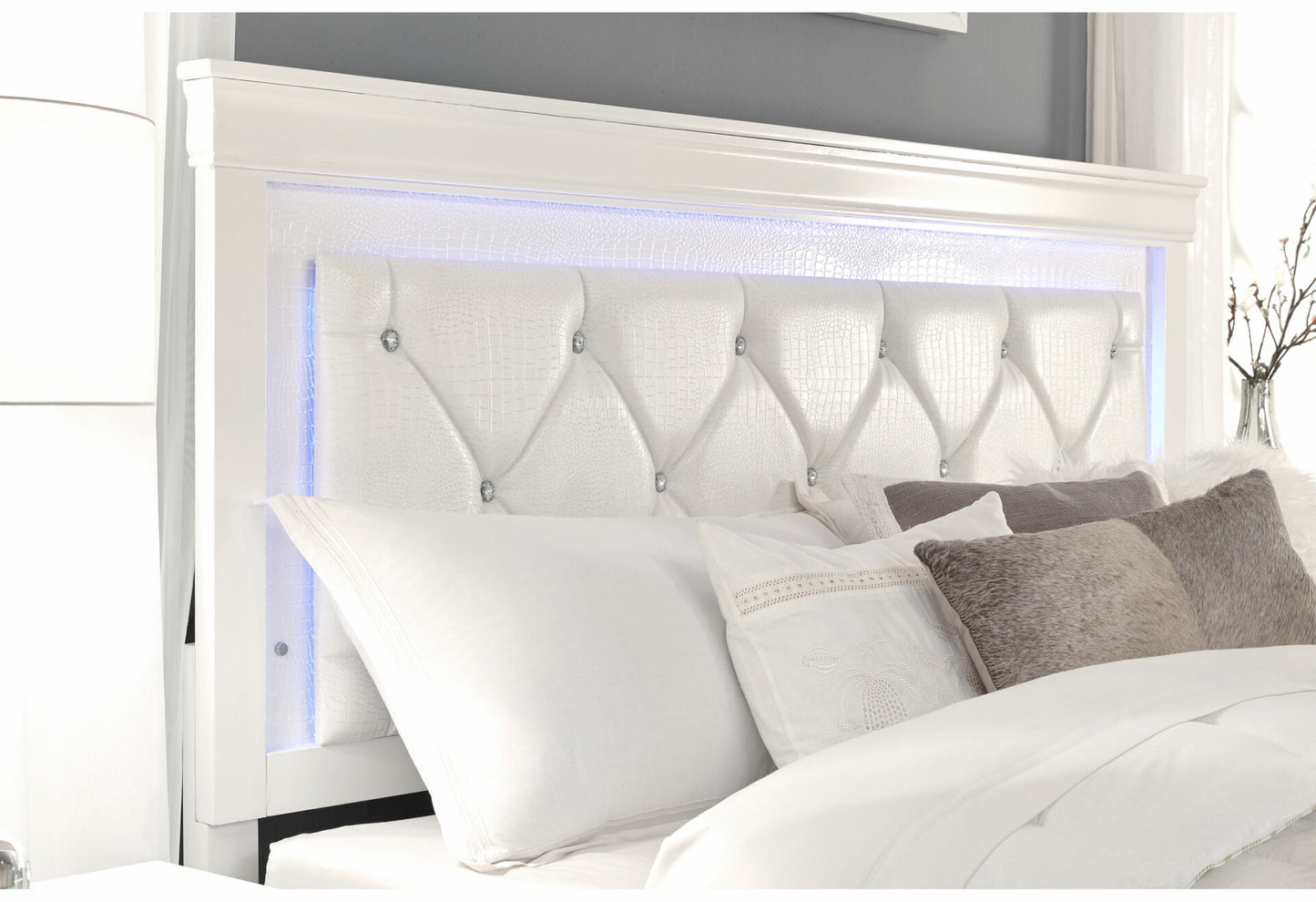 A fresh new look to a classic design defines the Pompei bedroom collection. By adding ambient LED lighting with crystal and faux croc accents, we’ve given a timeless style a modern update.