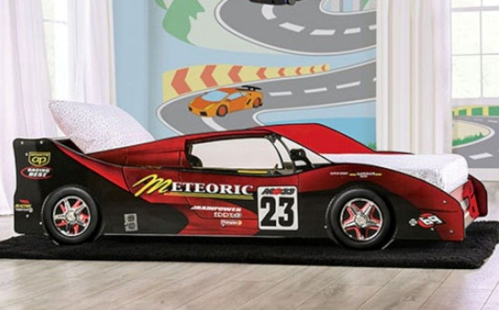 For those aspiring race car drivers, here's the perfect bed to feed their aspirations! With replicated wheels and sponsorship markings, this race car bed is a dreamer's delight. And it's sturdy, too. Metal support structure and included slat kits ensure a stable, safe, and fun space.