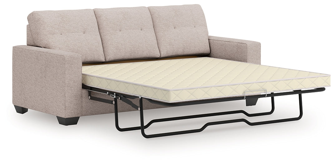 Sincere in its styling, this queen sofa sleeper marries classic function with modern design elements for truly transitional appeal. Its track arms lend a contemporary vibe while soft, durable upholstery ups the comfort level. Guests dropping by? The included memory foam mattress effortlessly provides extra sleeping space and neatly tucks away when not in use. And with the goes-with-anything neutral color, styling this sofa is made simple.
