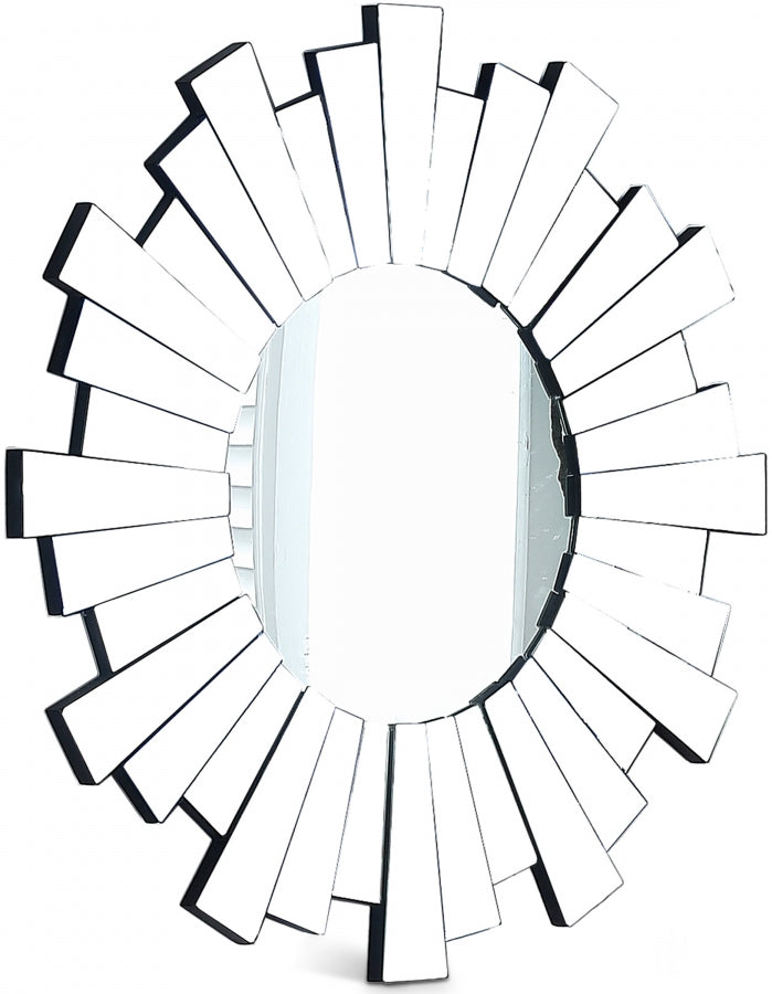 Make this Nexus mirror a reflection of your modern taste. This striking mirror features a new take on the classic sunburst design with various geometric shapes coming together to form its frame. Each piece that forms the frame is also mirrored, so the result is a stunning presentation that is contemporary and bold. Hang this mirror on any focal wall to attract maximum attention, or pair it with the coordinating Nexus console table for added oomph.