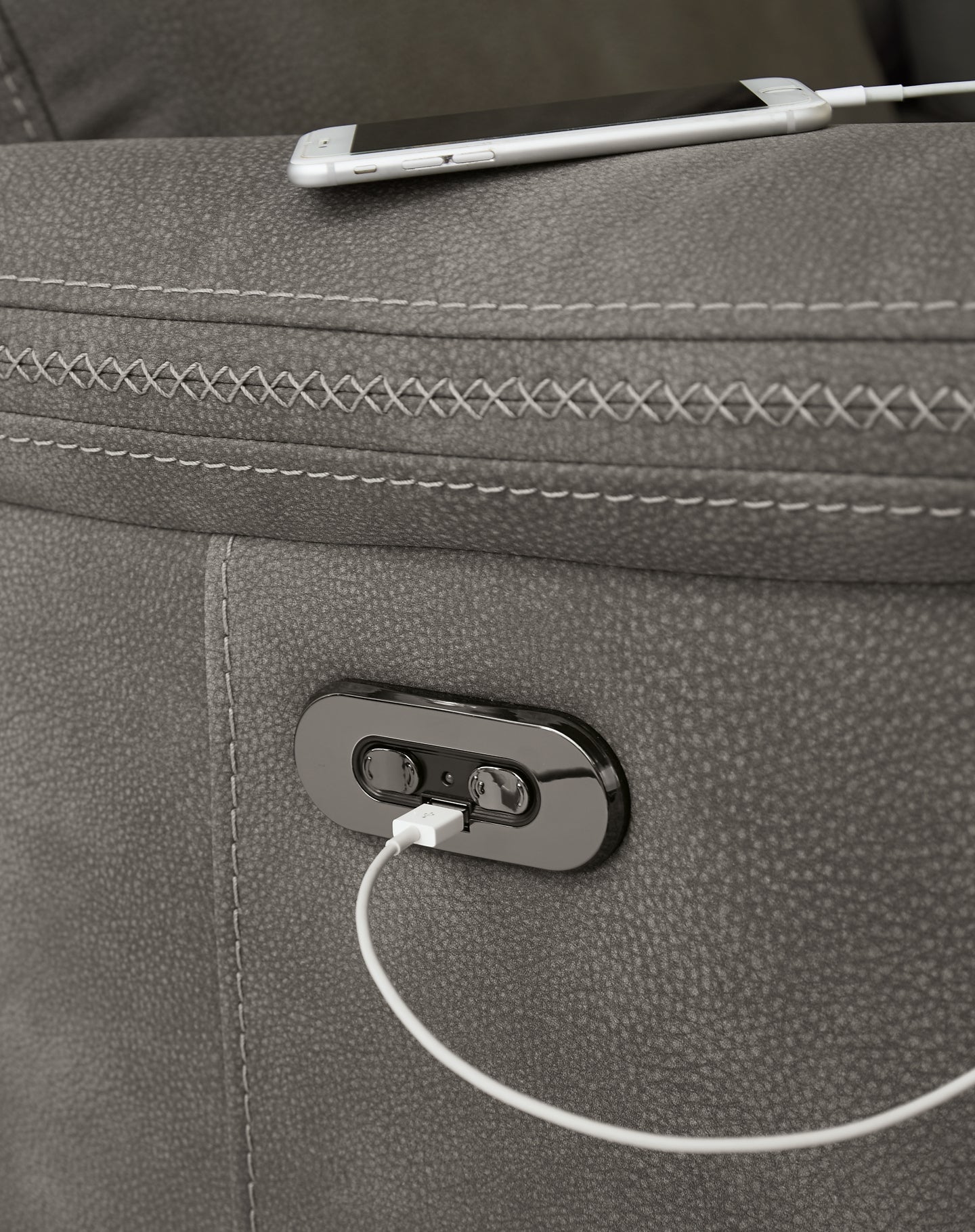 It’s time to rethink the way you relax—and time to experience the joys of this power reclining loveseat. Taking a fashion-forward approach to the art of relaxation, the loveseat—with a one-touch power control and an energy-efficient USB plug-in—will elevate your style and raise your standard of living. Its zero-gravity mechanism and extended ottoman offer added comfort. And talk about low maintenance. This designer recliner is wrapped in durable upholstery that’s water-repellent and family-friendly.