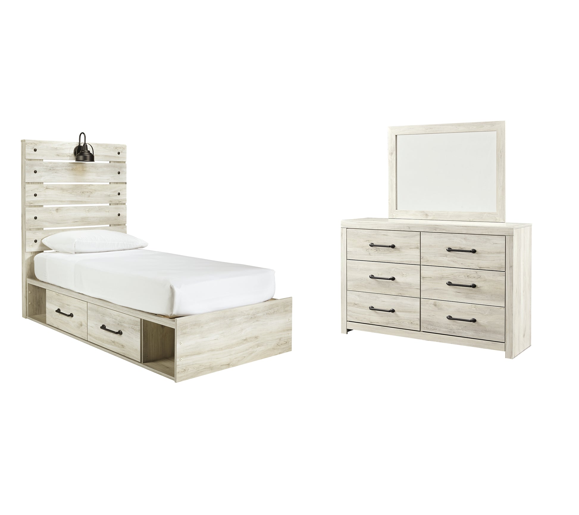 Hollivern Twin Panel Storage Bed with Mirrored Dresser