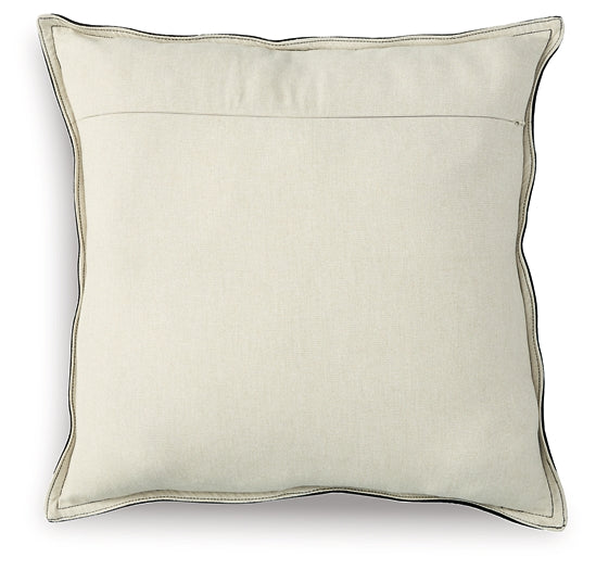| Details | Face made of leather; cotton reverse, Soft polyfill, Knife-edge construction, Zipper closure, Spot clean only, Imported | |