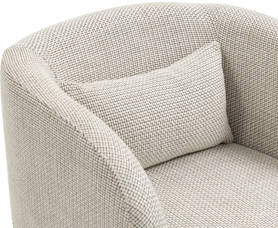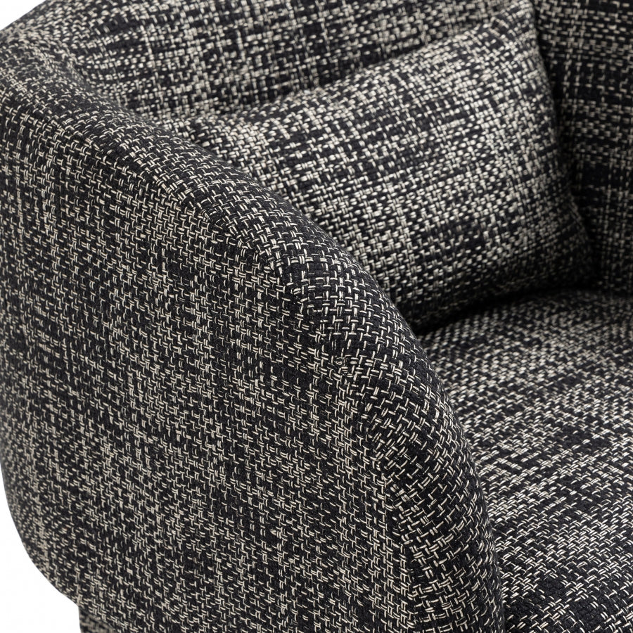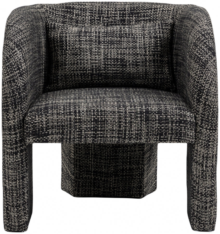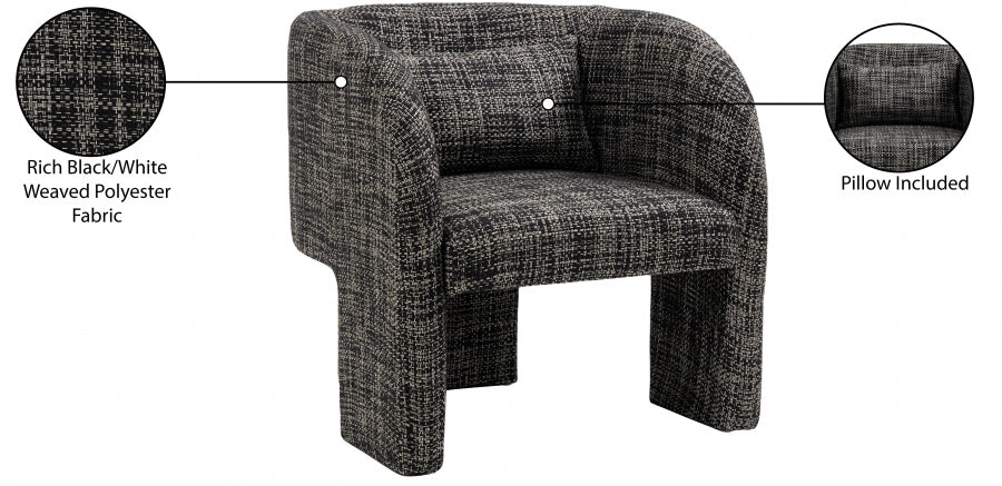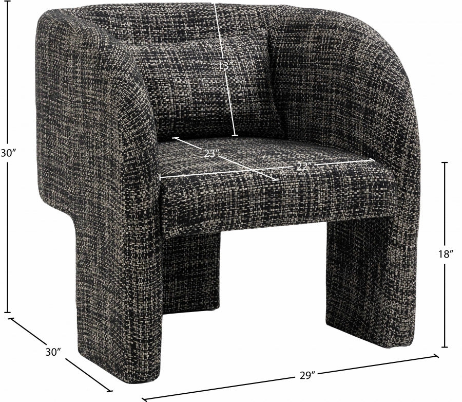 Give guests the best seat in the house when you seat them in this Sawyer weaved fabric accent chair. The boxy look of this chair is an instant attention-getter and makes it an ideal addition to your modern or contemporary decorative setting. The rich black polyester fabric features a woven design for added textural appeal and beauty, and the chair comes with an additional pillow to help support your back and lumbar region.