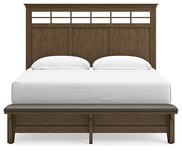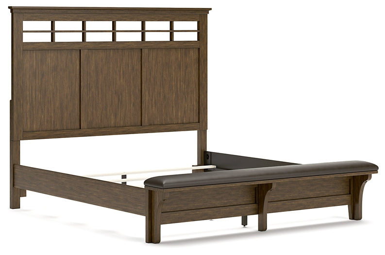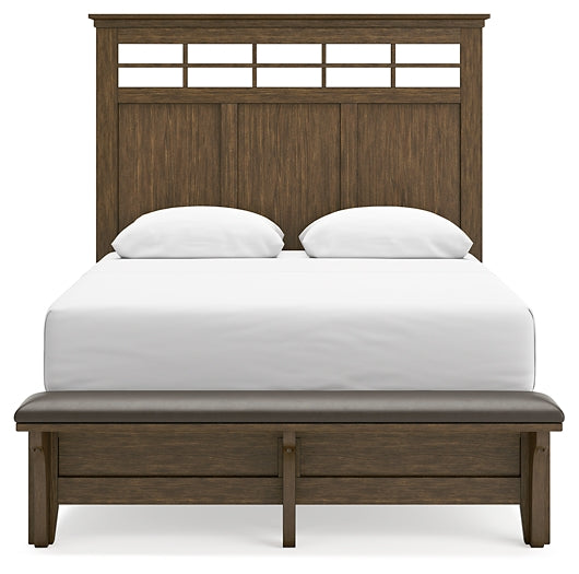 This queen panel bed is well-suited to everyday living with its expertly balanced approach to style and function. Take the stress out of decorating—a classic medium brown finish easily pairs with existing furniture pieces. Its timeless design stays in style as you update your space, while open detailing at the top of the headboard is a trendy touch. And its cushioned footboard bench provides seating for morning get-ready routines or late night chats. All that's left for you to do is to effortlessly enjoy the day-to-day comforts of home.