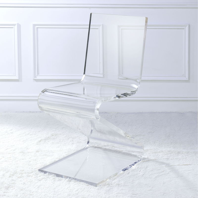 The Acrylic Z-Chair is the missing piece to your home! This super stylish chair can go anywhere in your home thanks to its clear, modern style. Pair this chair with a cool dining table or just make it a standout on its own in your bedroom or living room, the options are limitless. The chair features a solid seat and back and the entire chair is made out of acrylic. Add this Z-Chair to your home today for an instant touch of glam.