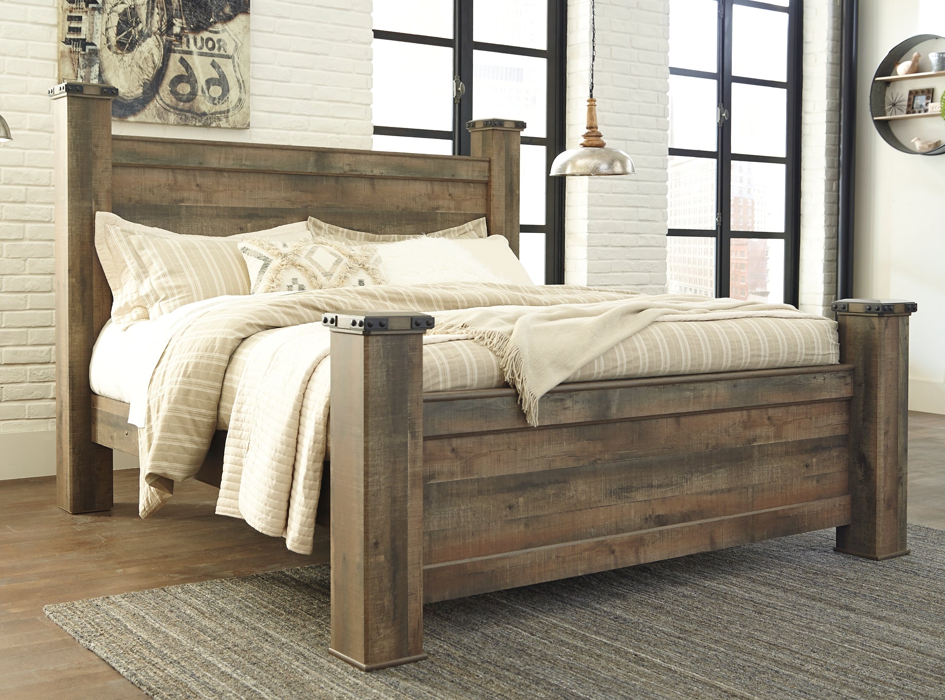 Giddy up your style. If you’re a cowboy or cowgirl at heart, this queen poster bed matches your authentic sense of taste. Its rustic finish, plank details and nailhead trim are an homage to reclaimed barn wood, making for a sophisticated look loaded with countrified charm. Mattress and foundation/box spring available, sold separately.