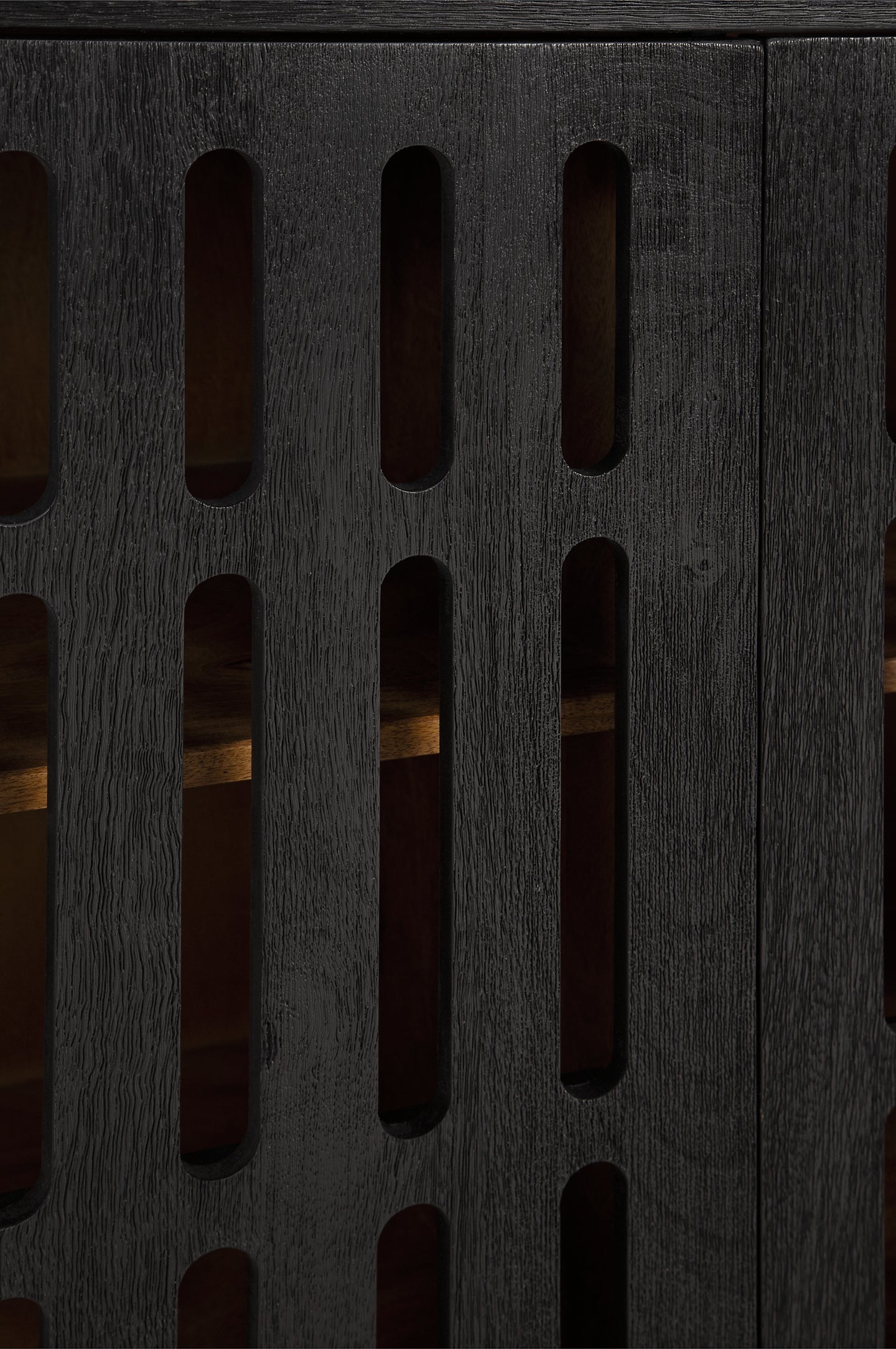 | Details | Made of mango wood, Exterior with black finish, Wire brushed effect, Interior with natural finish, Metal legs with black finish, 3 doors with magnetic push latch function, 3 shelves, Openings in back for electronics, Minor assembly required; simply lay flat and attach legs | |