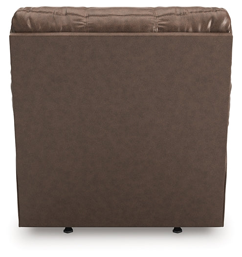 Details Pull tab reclining motion, Corner-blocked frame with metal reinforced seat, Attached back and loose seat cushions, High-quality foam cushions wrapped in poly fiber, Faux leather upholstery, Gentle rocking motion