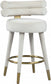 Elevate your home bar or counter area to a sophisticated new level with this Fitzroy velvet counter stool. Covered in chic and soft black velvet upholstery, this glamourous counter-height stool offers a padded seat and back to cradle your body in comfort while you enjoy a cocktail or a plate of smiley faced pancakes. The upholstered legs are capped with a brushed gold metal cap for added contemporary panache.