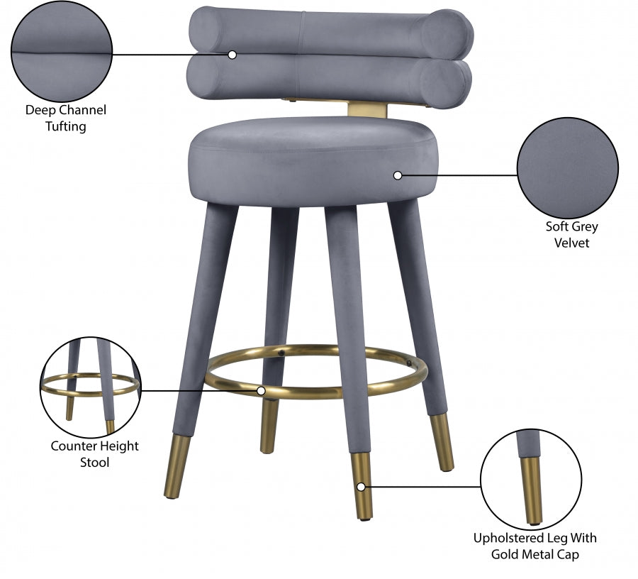 Elevate your home bar or counter area to a sophisticated new level with this Fitzroy velvet counter stool. Covered in chic and soft black velvet upholstery, this glamourous counter-height stool offers a padded seat and back to cradle your body in comfort while you enjoy a cocktail or a plate of smiley faced pancakes. The upholstered legs are capped with a brushed gold metal cap for added contemporary panache.